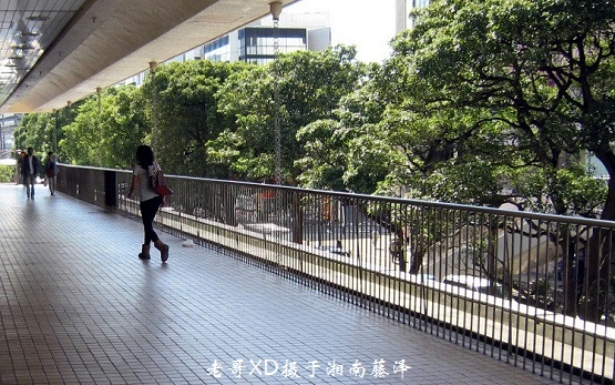 友人没注意到左下角,下了天桥,径直上了堤坝。然而友人在藤沢开画廊的熟人浜田家的闺女,那个湘南开篇伊始就提到过的毫无“平屁股的硬伤”的浜田家姐,却快步走入天桥左下的纪念广场里,致电友人知返。