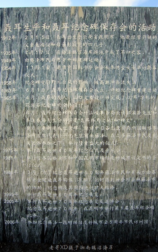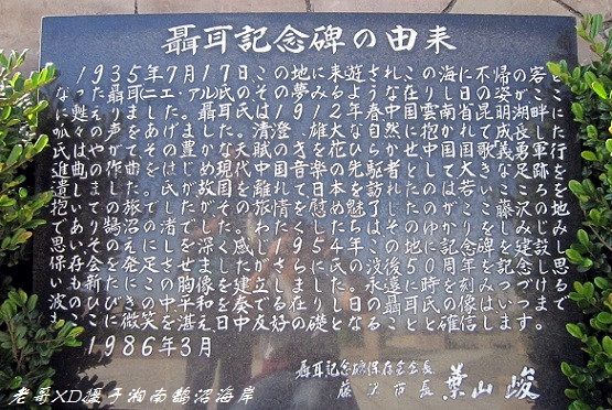 1981年,神奈川县藤沢市和聂耳家乡云南昆明结成姊妹城市,增设双语碑文。