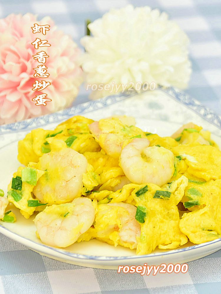 主料:虾仁约100克、鸡蛋3~4枚、香葱1棵。