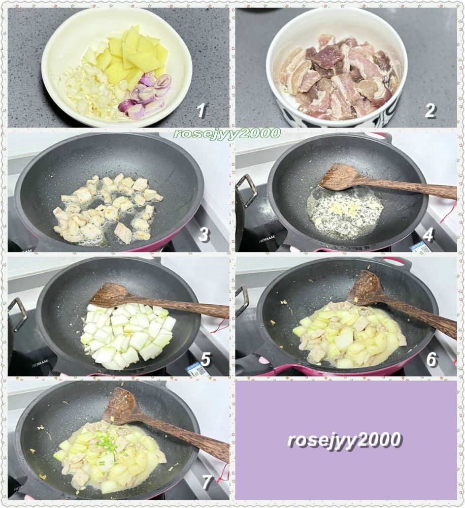 配料:姜片6~8片、红葱头片2粒量、蒜末2粒量。