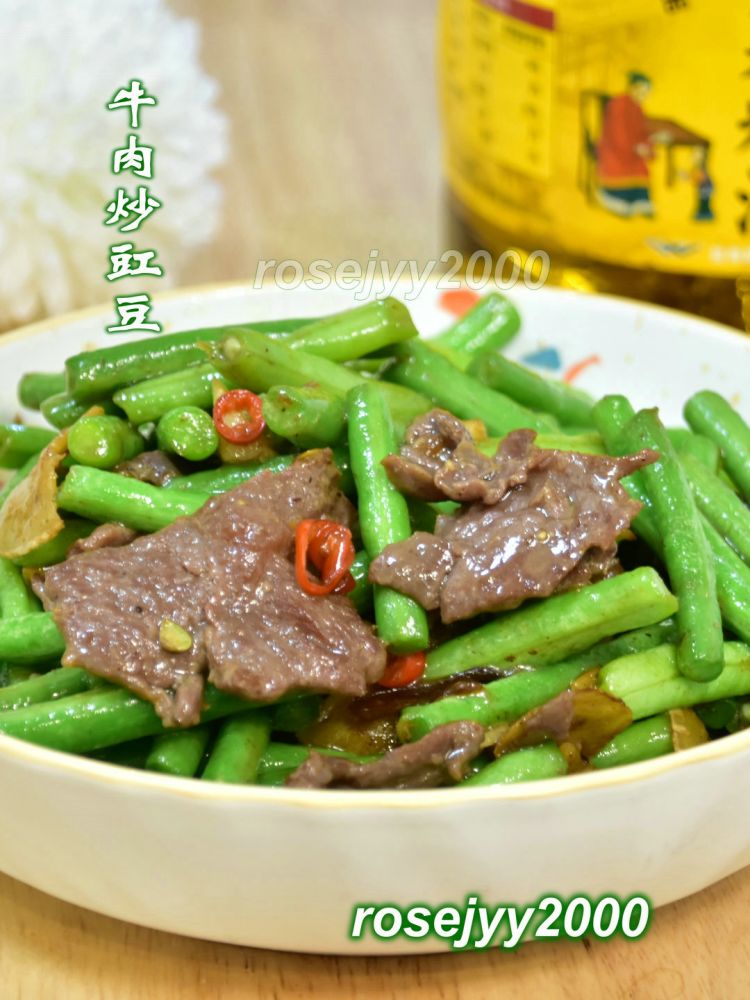 三、豇豆比较耐熟,在与牛肉合炒时,先把豇豆炒至刚断生,再加入牛肉兜几下;
