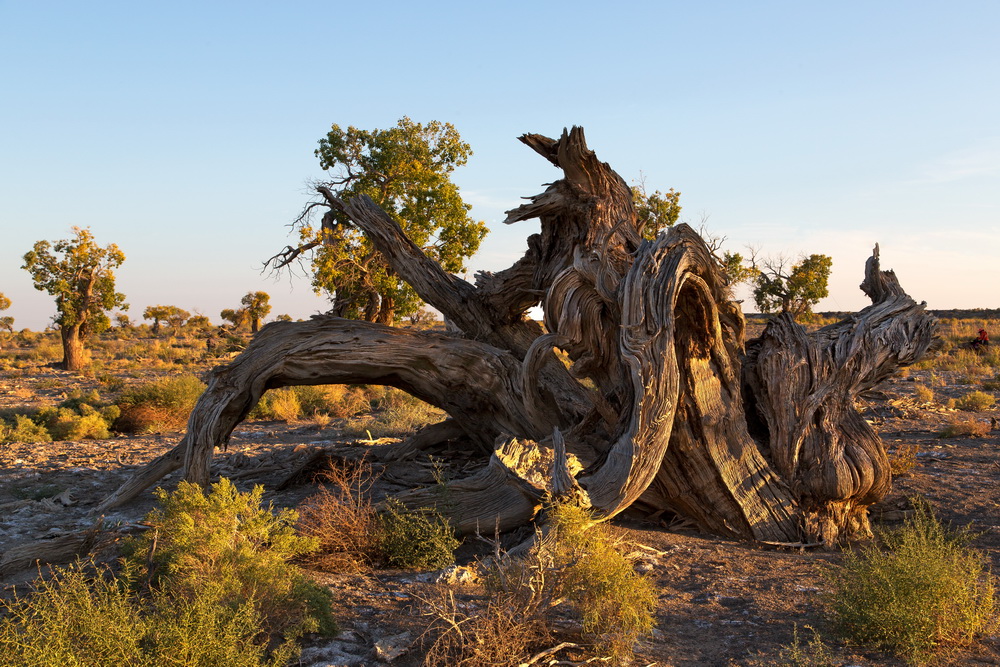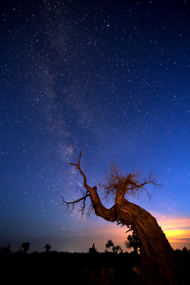 第一天是子夜发的旱田。第二天就到了乌尔禾的胡杨林。这是一颗奇特的胡杨,因为只留下了一层树皮屹立。