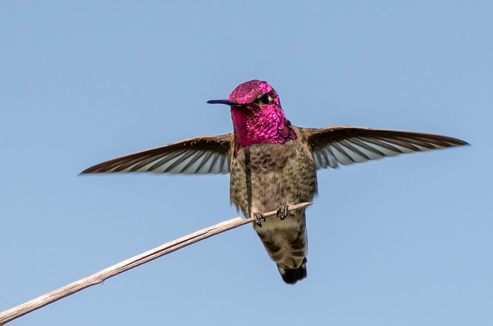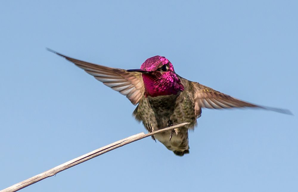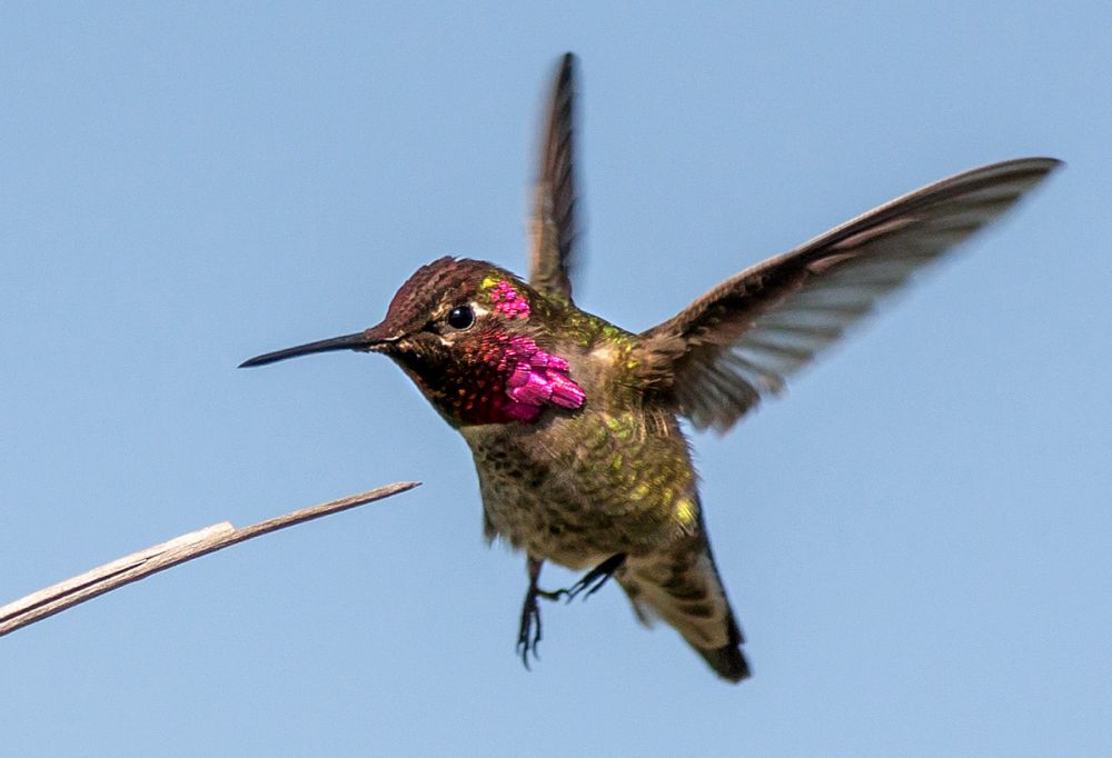前天上山走走随手拿了Canon 400 F5.6与Sony 5R。见一只蜂鸟飞来飞去,就手动对焦到它站的树枝。在它飞回来的时候连拍。5R居然每秒拍十张。Buffer一次hold九张。还是RAW片。