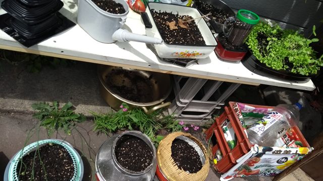 这些是在一条街上看到的,不是一家,而是好几家。用各种“废物”栽种蔬菜花草,好像是互相别苗头,看谁更环保。
