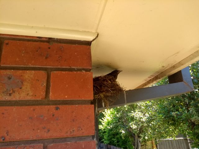 12月初,黑皮黄嘴八哥在失去一窝蛋后,又在水管处重新弄了个窝。圣诞那几天高温,看着两只小鸟可怜,就爬上去喂了点水。
