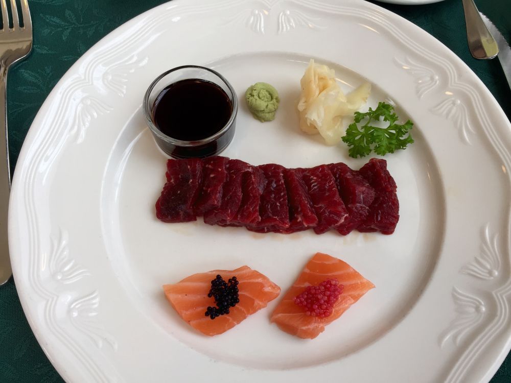 煎马肉排。点菜之后正要告诉侍者生熟度,被一口打断:就一种烧法,是最好最正宗的烧法。
