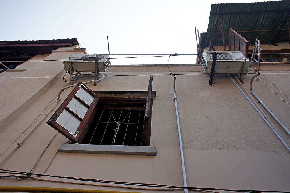 5。老家进不了门,只能看看外面。抬头是亭子间,上面第三层无窗无顶,是“晒台”。当年我和两只小鸡常去的地方。