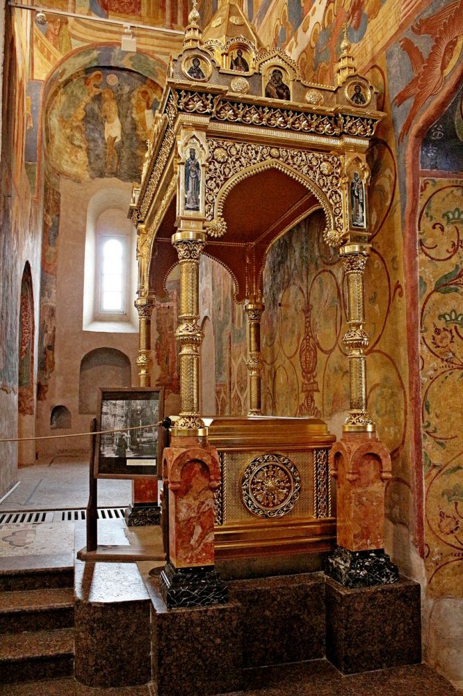 修道院中还有个醒目的建筑,它是沙皇鲍里斯(boris)的墓葬处。当年他的猝死,引发了俄罗斯历史上一段有名的“混乱时代”(我们在上面提到过)。不到十年之内,波兰人最终被赶走,动荡年代结束,直接导致了罗曼诺夫王朝的正式登场。