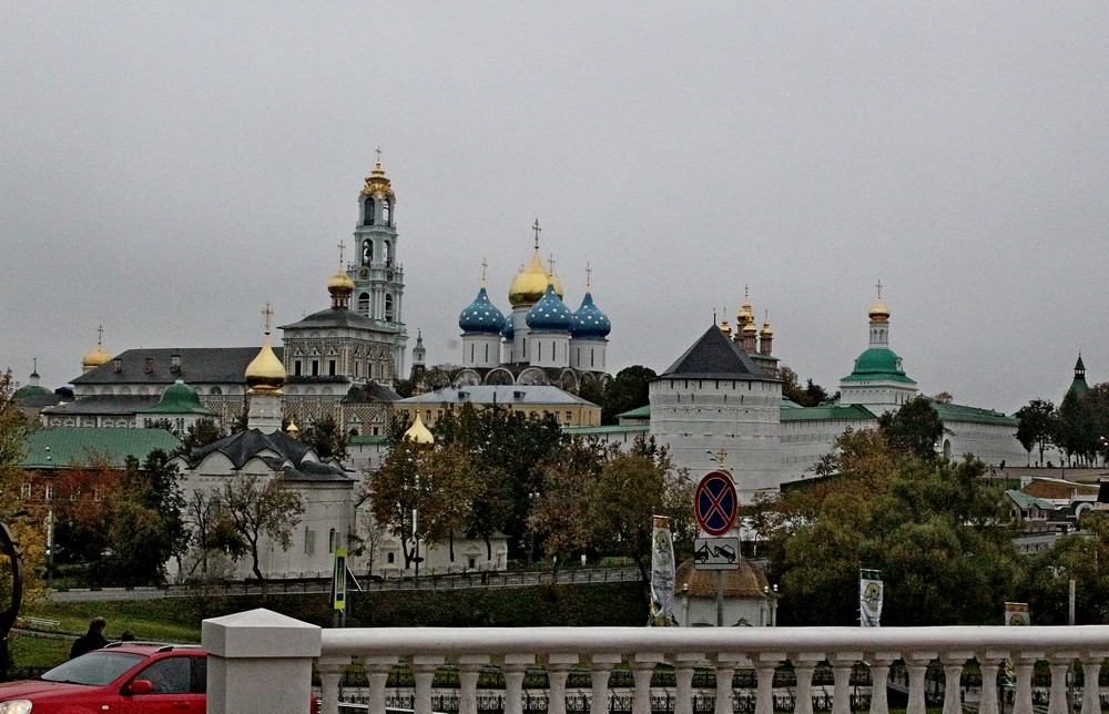 图13 气势恢宏的谢尔吉圣三一修道院远眺。当中的钟楼88米,是当年的最高。
