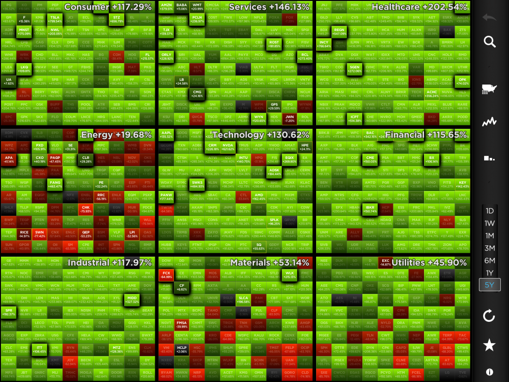 一个时期一般不会同时持有SP十大行业中五个以上行业,否则就去做股指得了。目前我主要集中在能源与科技合计约占七成仓位。兼有生化,金融,消费,材料。