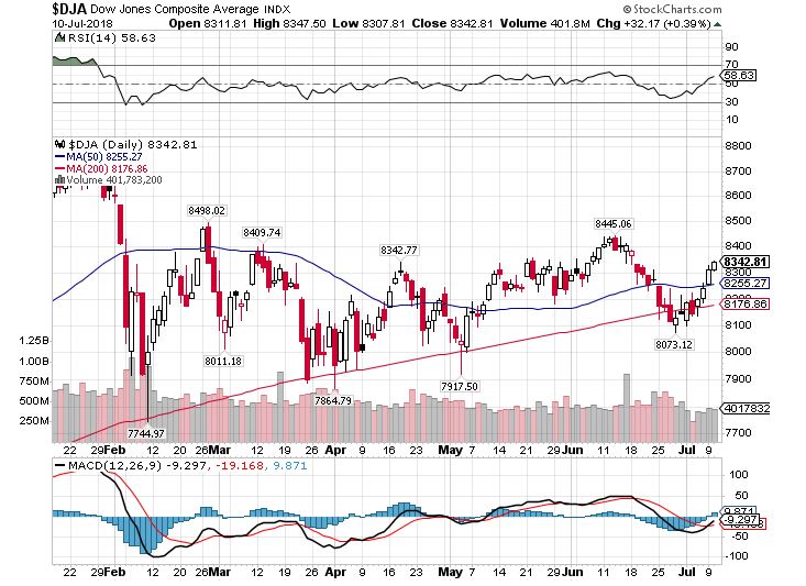 道指高走高涨178点,并涨至6/11波段高点。 |