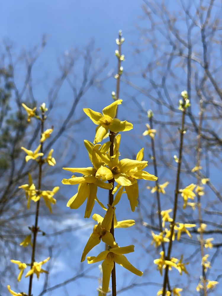 信步来到一个苗圃,野苹果刚刚花开,分外艳丽。随处可见的连翘,不知道是不是留学生刚刚收到的防疫包中的成份。