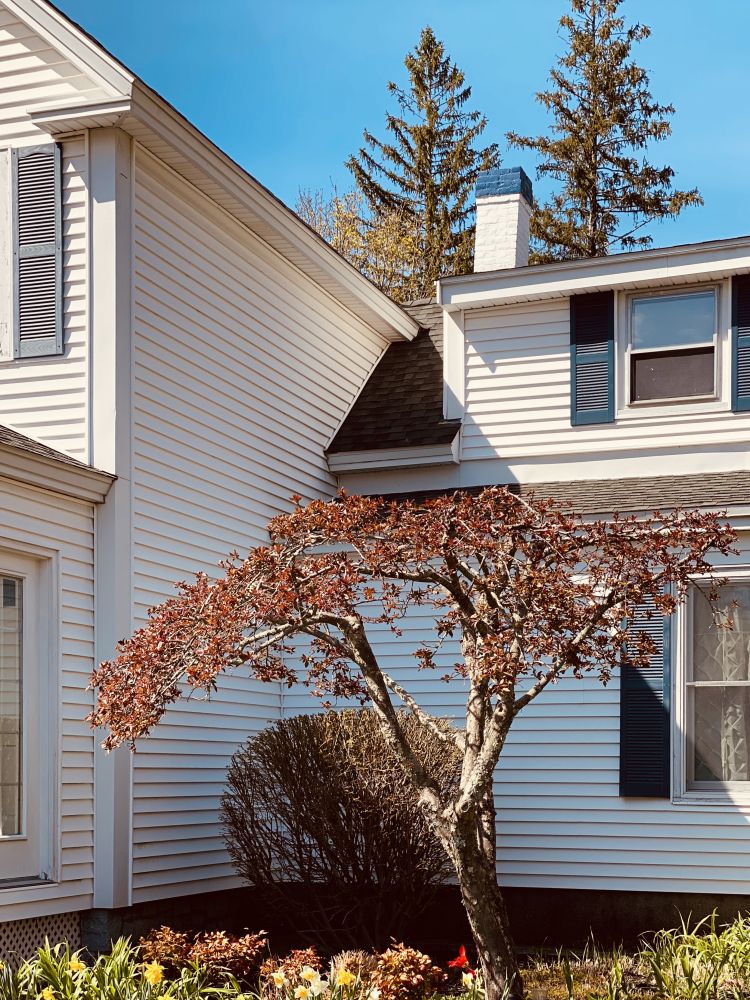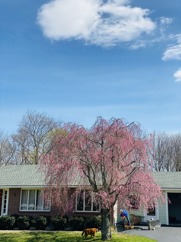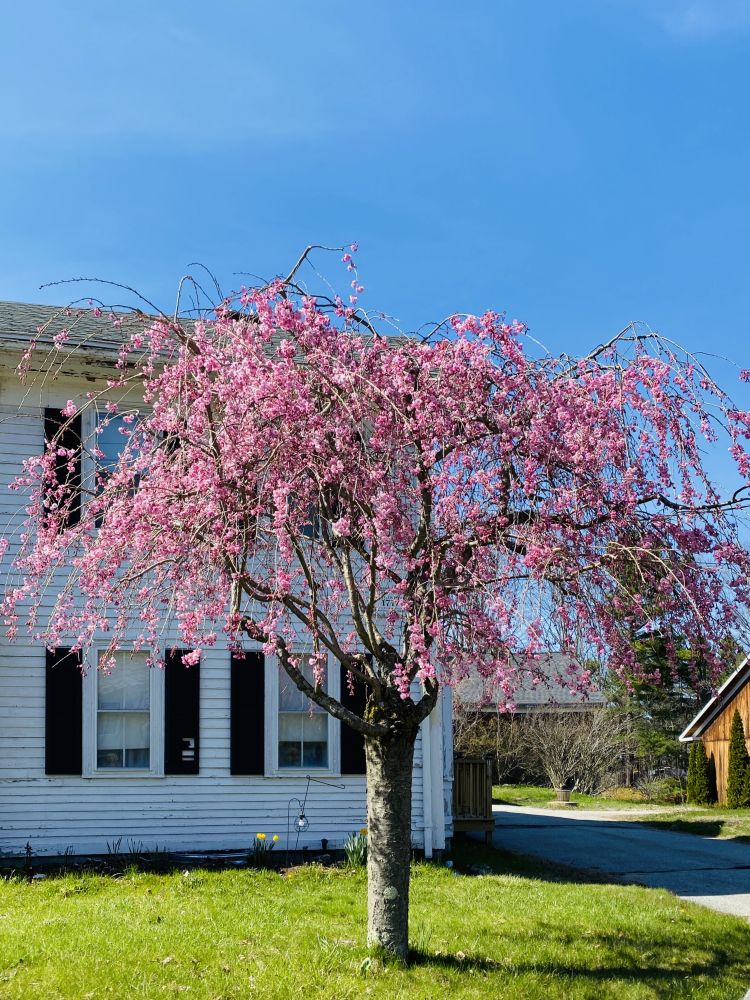 穿到小木桥,一片松林,返回主街,路过五百年历史的警长老宅,梨花正开,引人流连。