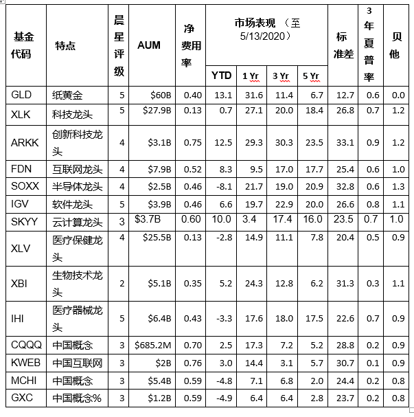 我们精选了黄金,科技,医疗保健,中国概念等行业细分专题ETF,以供投资人聚焦特定的行业与板块,更加有的放矢,取得预期回报 (数据以5月13日入选日计)。