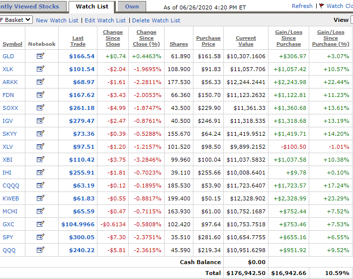 短期的表现不代表未来,但是选到全面超越大市的一揽子产品总是令人兴奋。所选14支ETF仅1支录得小幅亏损(-1.01%),2支大幅超越大市,整体超越大市(SPY)4.01个百分点。