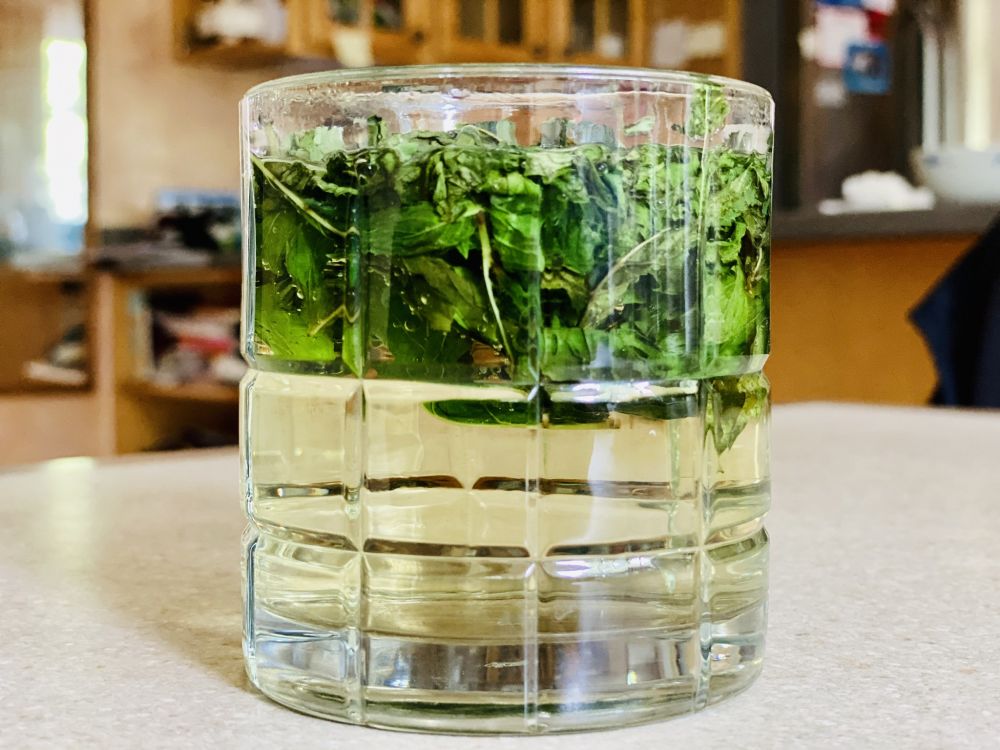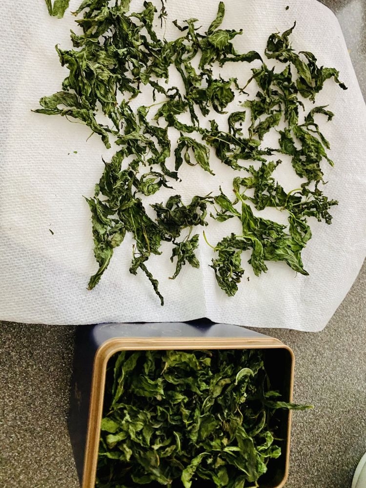 几年前随手种了一棵薄荷,每年拔除,仍然长成一片。剪了一筐,洗净沥干。摘下叶子,置于厨用纸上,微波炉加热两分钟,便起到杀青的效果。如此反复,收了两罐。冲泡一杯,果然清凉。
