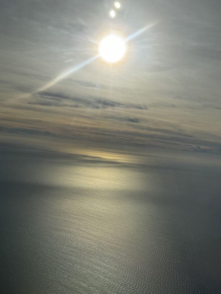 从飞机上俯视海面,一般来说都很好看,没想到这次尤其好看。