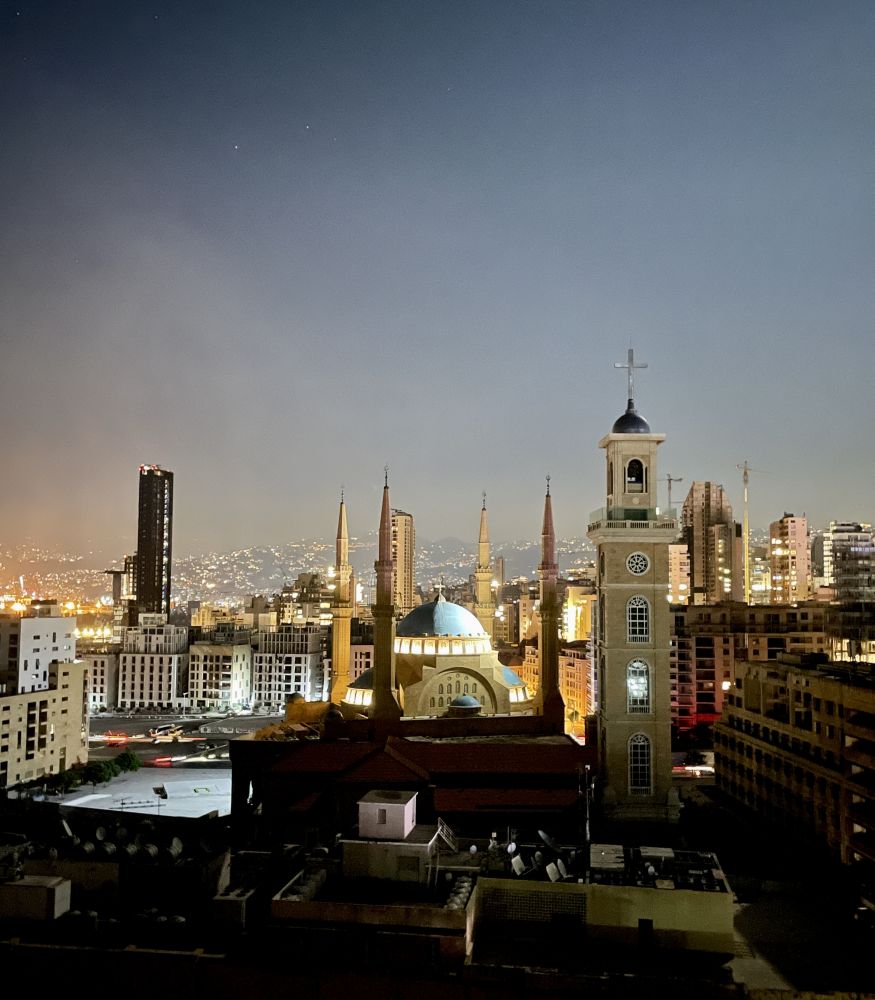 11。贝鲁特夜景,可以看到蓝顶的清真寺和旁边教堂的钟楼