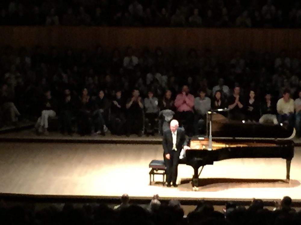 在一群标新立意 奇装异服 彈琴摇头晃脑的新一代钢琴神童中,波里尼显得不入流,苍老,还跎背的,但是,但是,他一旦坐在钢琴边弹起琴 那种手指神速,那种感性和理性的对撞并驾齐驱追求的境界,那是后辈们摇头晃脑没法达到的,他的手指弹琴速度真是神快,75岁了,手指关节肌肉都那么年轻,那晚坐我身边一日本祖母级乐迷一边鼓掌一边跟我调皮地说 ”这就是波里尼!",来音乐会的也有很多年青人,