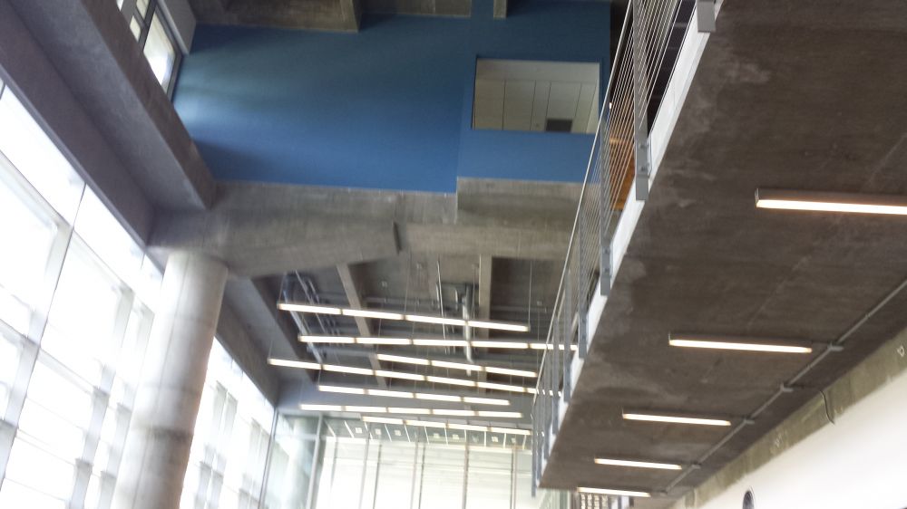 图书馆别样气派,庞大的空间,到处是埋头苦干的孩纸,人手一台电脑,不是暑假吗?我最欣赏座位式的楼梯,平时可以很惬意的做功课,需要时可当作大型集会的座位。屋顶有点太粗旷,原始水泥面,管道华丽丽的纵横穿梭……吖,这学校盛产理科僧,不要求了!