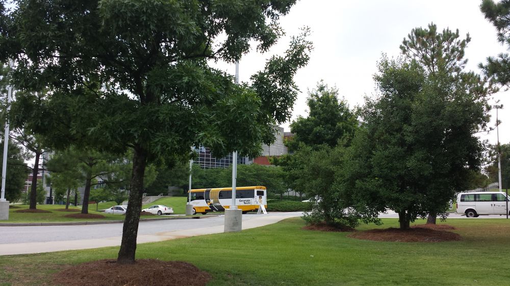 地铁坐到北小巷,出口便有免费校车到学校,我们决定逛逛。天气有点热,走向熏风来处,跨过I-85,便是学校的超大体育场,外观十分雄伟。不过在下当时只想吹冷气,催儿子往教务的楼房去。教务主任是个热情的金发姑娘,纤瘦身材,非常漂亮。报上女儿的名字,拿了资料,我赶紧找插座给手机充电。