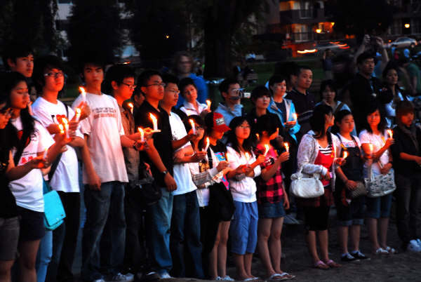 当Mike说到昨夜收集图片时候和女朋友相对哭泣的时候,当UBC的吴同学沉痛的朗诵着"生死不离"的时候,我们在场的每一个人的内心都在哭泣.