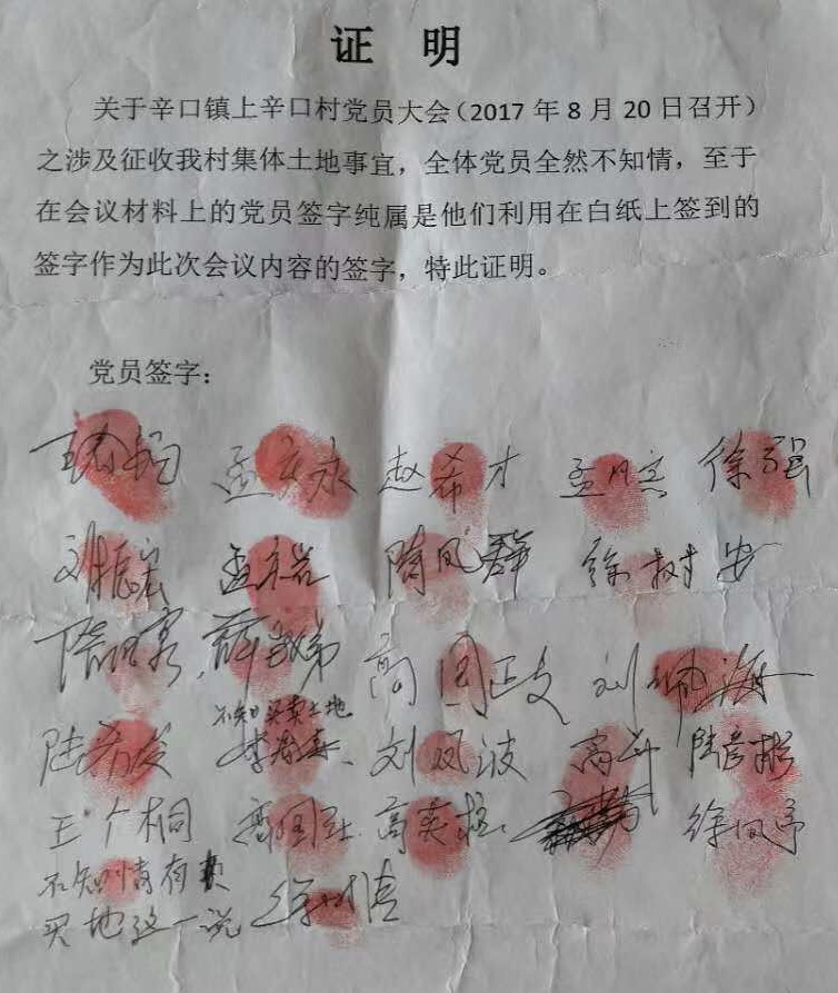 只有几个在村里领到狗粮的走狗昧着良心签字,大部分有良心的党员和村民代表坚决反对这种出卖子孙财产,出卖良心,断子绝孙的暗箱操作。