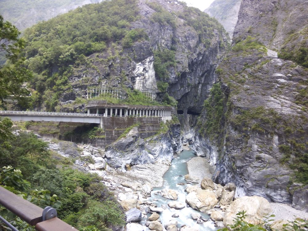 我们先到清水断崖。其实就是海边悬崖,还没有加州一号公路好看。由于开始下雨,碧海蓝天变成雾蒙蒙的。蓝先生拿出雨伞说是为客人准备的。逗留了一会儿我们就往太鲁阁驶去。我们是从另一进口去太鲁阁公园。路上蓝先生说太鲁阁里面的原住民都搬到外面。原来的步道就成了观光通道。太鲁阁有很多步道。有的因为塌方而关闭修建。