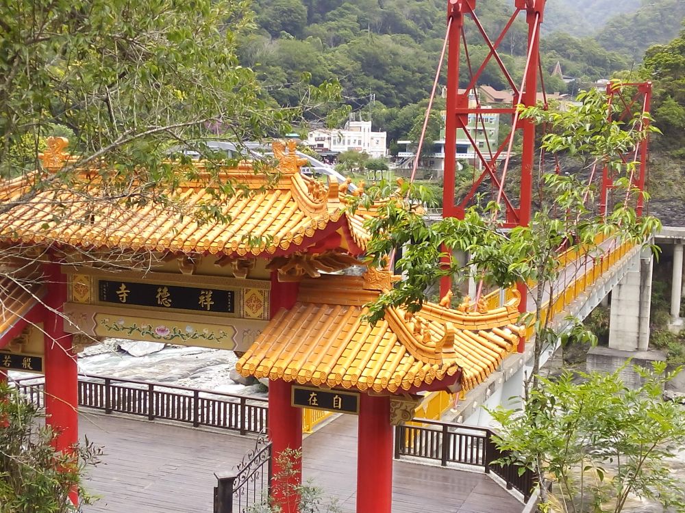我们到天祥吃午餐。天祥是游客歇息之处。有太魯閣晶英酒店(5星),两家饭店和7-11便利店等.我们先到附近的的一座寺庙参观。登高可看天祥全景。回到饭店时看到司机已在吃饭。本想替他付费,他说司机在这里吃是免费的。他说两家毗邻的饭店都差不多。不推荐任何一家以示公平。景区饭菜并不贵。机场也一样。处处显示台湾百姓民风朴实。