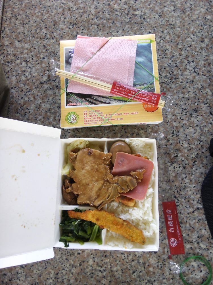 其实游览太鲁阁只需住一晚。我不想把行程安排得太紧凑太累。隔天早上到旅馆附近的街道逛了一下。觉得很安静,也很干净。楼房都不高。中午我们乘火车回台北。在站台小卖部买台铁著名的便当。有60和80两种。好吃且实惠。