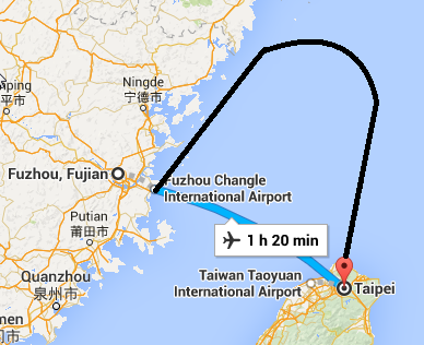 5月下旬我们全家回国探亲访友,顺道去台湾旅游5天。受惠于10年大陆签证和台湾免签证。自由来回两地。我们乘厦门航空从福州飞台北。厦航空姐的颜值明显高于其它航空公司,十分养眼。有趣的是飞行航线是几形,不是由图中蓝线所示。我想可能是直飞距离太短。如果不是民航机而是军机预警时间太短。毕竟两岸都互存戒心。福州机场在长乐,距离福州市区有45公里,恐怕是全球离市区最远的机场了。