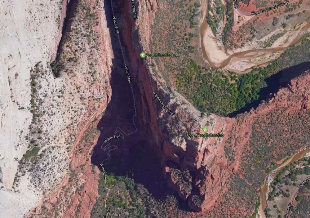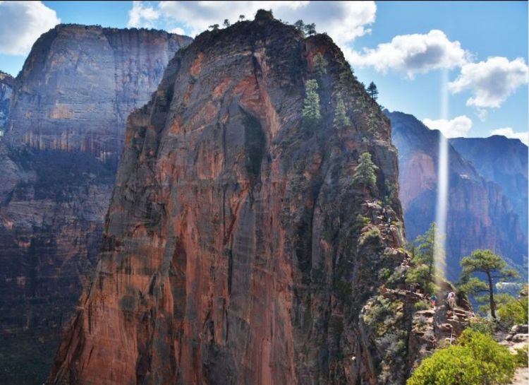 公园里有很多小道(trails),难易程度不同。其中以天使山道(Angels Landing)最有名但难度等级较高。来回8.7公里,高453米。从照片上看,有点象以前上过的黄山天都峰。