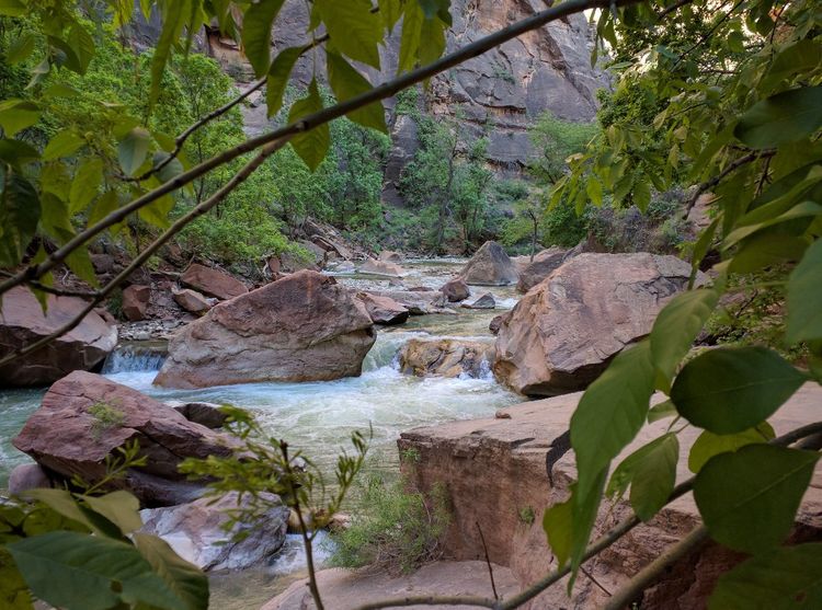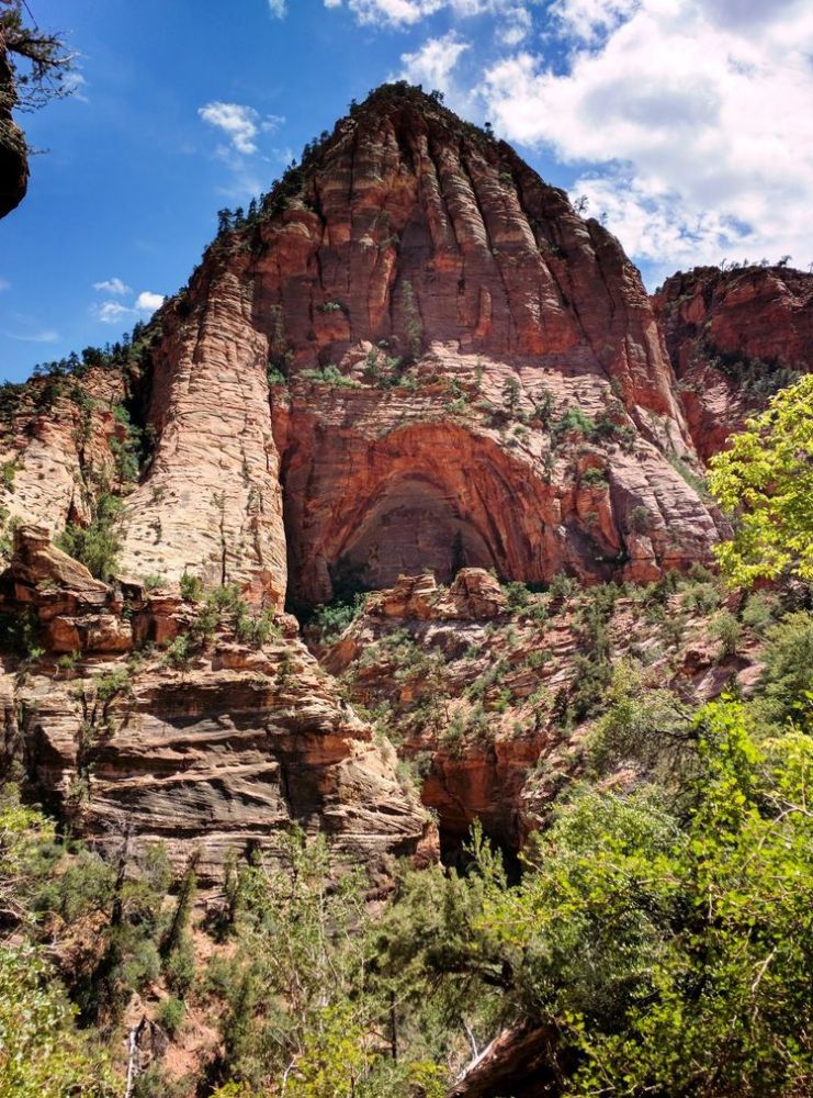 Zion 以悬崖峭壁著名。由于山谷里停车位有限和游客众多,除了住在公园里的游客有特别行车证外,外来的游客一律从游客中心乘免费的bus进去。途中有很多停靠站让游客下来观赏或走不同的山路。