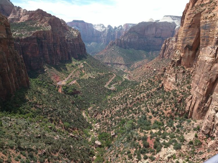 过了山洞后有路旁有不多的停车位。游客可爬上山去Canyon Overlook看刚才车过来的羊肠道。