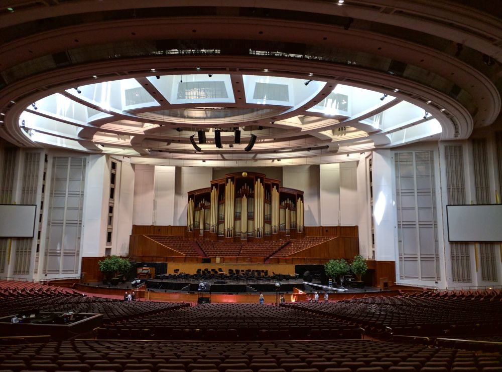 2000年竣工的会展中心可容纳21000人。偌大的空间竟然看不见一根柱子!据说是世界上最大的会堂。可用90种语言向分布世界各地的信徒转播。我们去时有志愿者带我们参观。