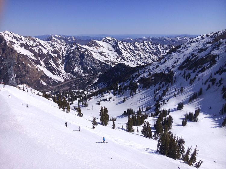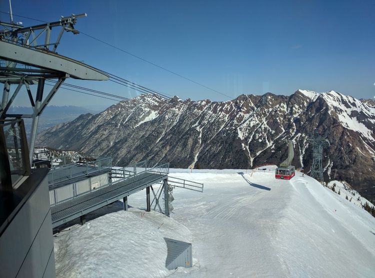 隔天早上我们前往盐湖城附近山区的Snowbird Ski & Summer Resort.缆车把我们带到900米高的山顶。虽然是春末,但山上还是白雪皑皑。