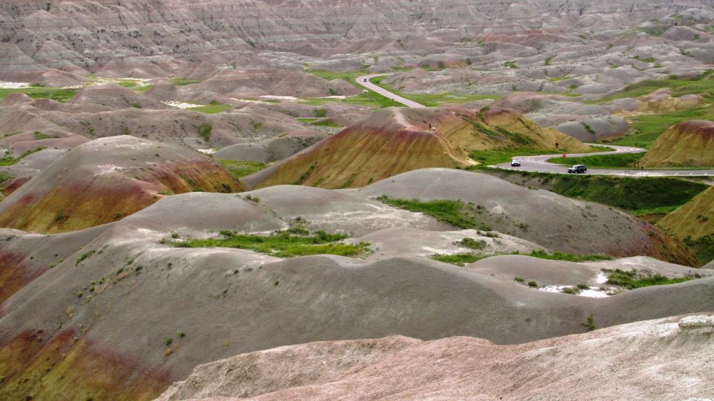 Badlands National Park是我们去游览的最后一个国家公园,也是最后一个景点。我们沿着240号公路进入公园。看到和Utah州等国家公园完全不同的风景。
