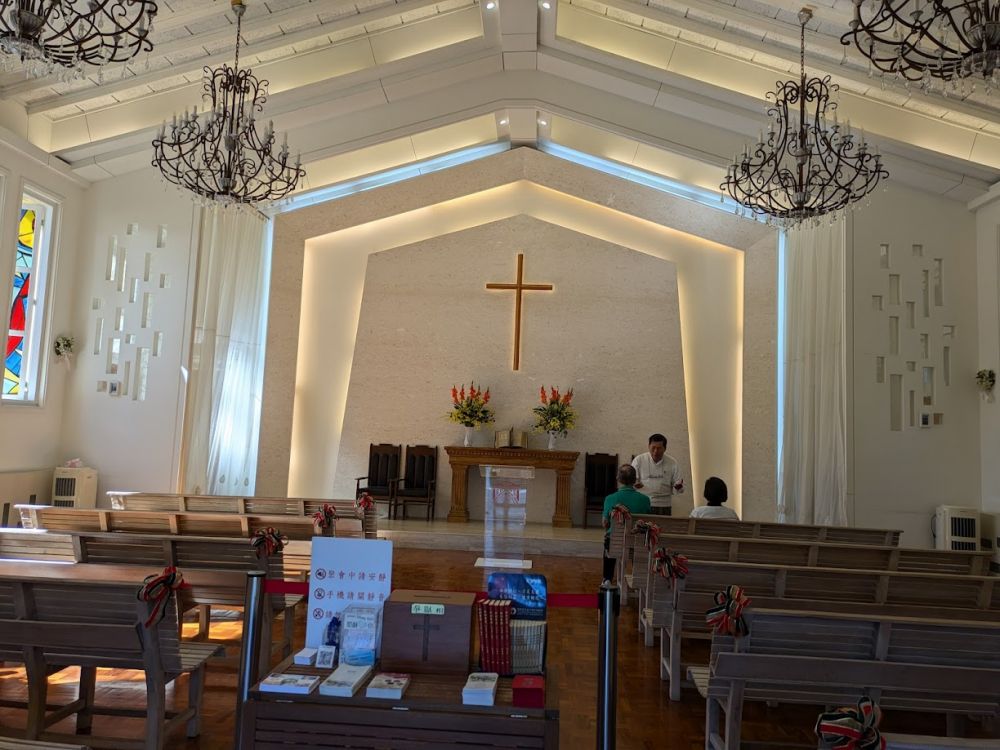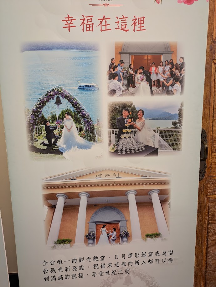 隔天我们坐游船回到水社綜合商場。寄存行李后,沿着湖边步道来到耶稣堂。老蒋夫妇曾经做礼拜的教堂。