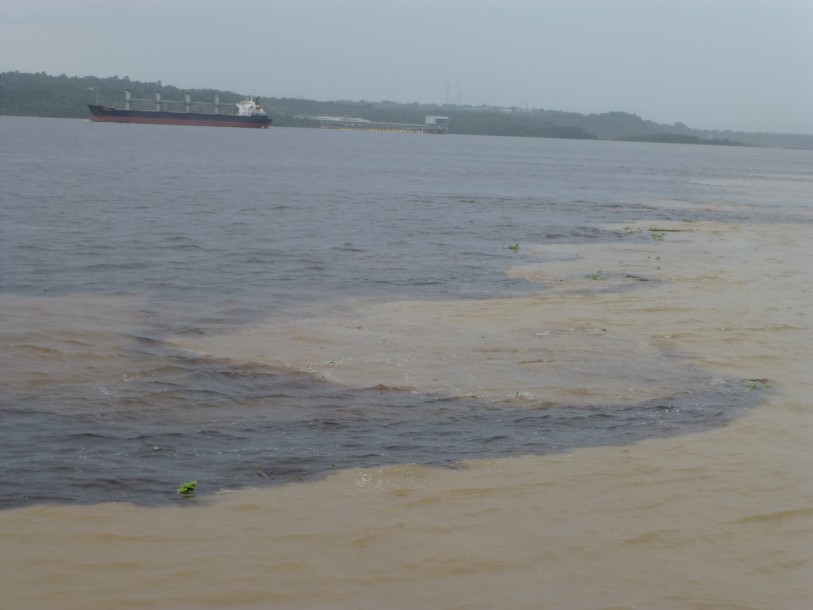 真正被当地人称为亚马逊河这一段是黑河(Negro)与黄河(内格罗河)的交界后. 其交界带形成如此鲜明的黑白之分.可谓一大景观.