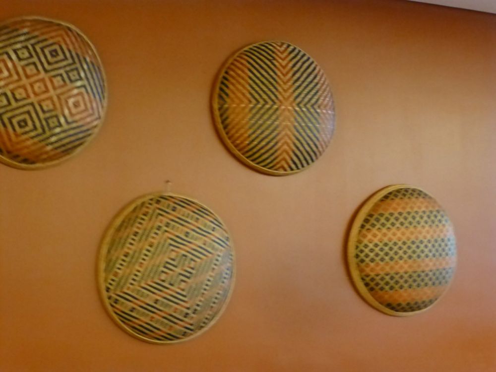 旅店墙上的饰材虽选用普通的农家竹条小筐,却不失艺术色彩,大方朴实无华.让你觉得真的到了一个南边异国水乡.