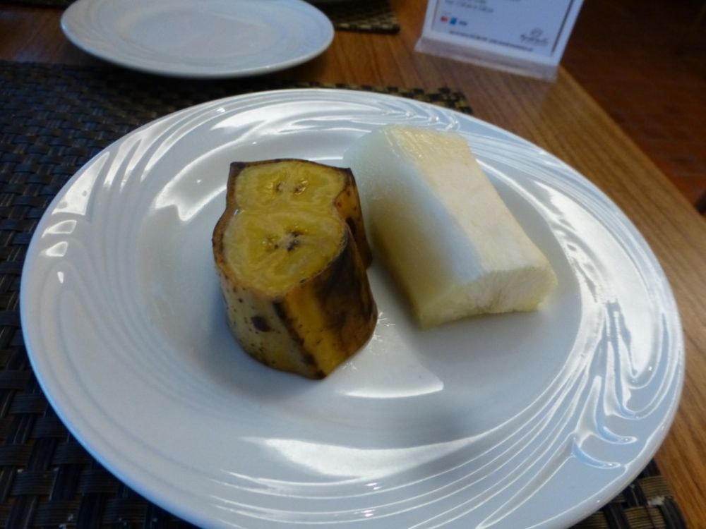 清晨一缕阳光穿入室内. 经过一夜休息.恢复了元气.早餐品尝了当地特色小吃:木薯饼.木薯是一种坚果, 磨成面后无论熬粥或做成饼越吃越香.
