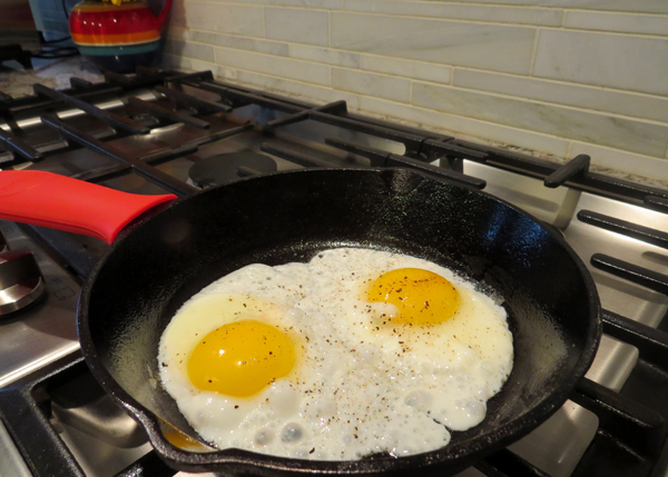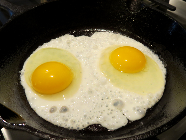 早餐煎鸡蛋时,还有一点点地粘锅: