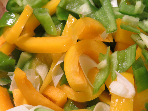 加入彩椒段翻炒: