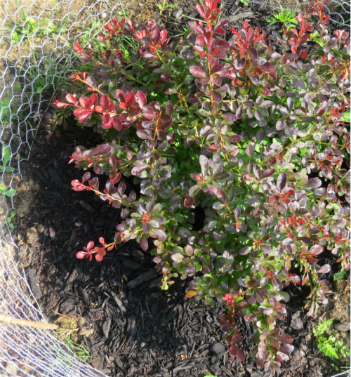 做后花园时,我常常站在窗前发呆,最终决定:沿着铁fence种两棵粉色丁香,春天璀璨芬芳;两棵Japanses barberry秋天红艳;两颗 大绣球,夏天繁茂;两簇红百合,从夏末到深秋开放;每边三棵绿杉,四季苍翠;在它们的正中间,种了一棵花叶柳,高可10英尺,直径8英尺。园艺中,树量一般都是单数,琢磨了一下,觉得挺符合审美要求的。