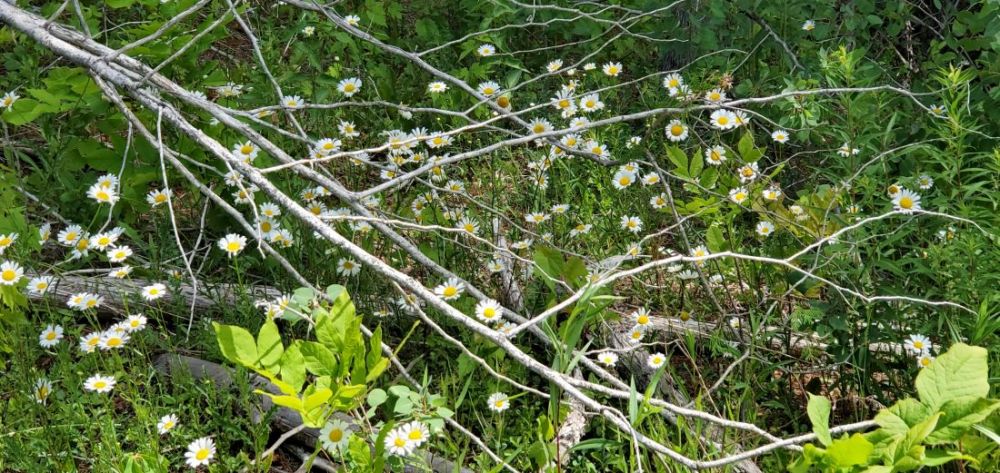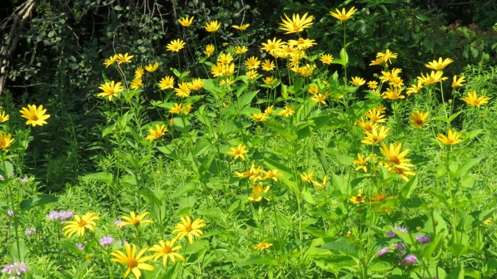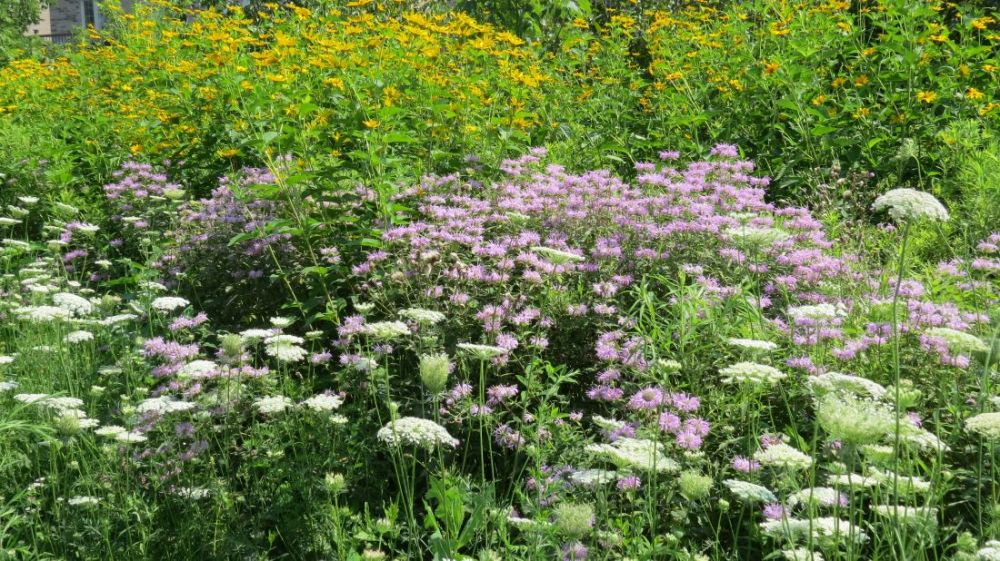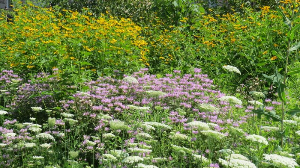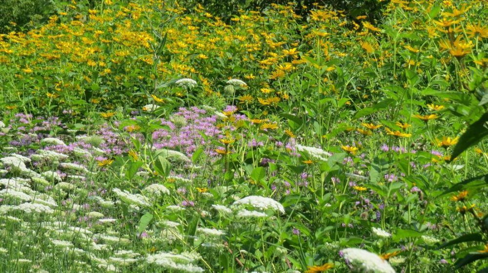 这是我骑车常走的路,两边的野花层层叠叠,蜂蝶萦绕,花香袭人,而且两三周,花色品种就要更换,大地就像一个硕大的花瓶,任由大自然的巧然打扮: