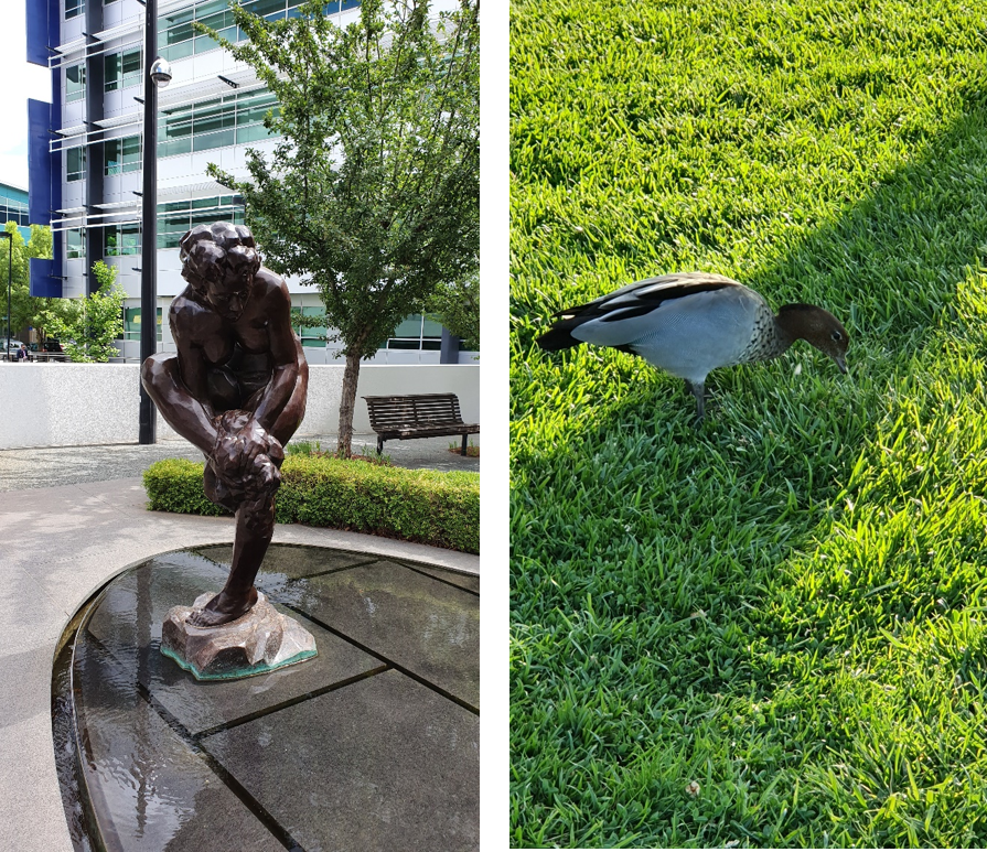 上面塑像,都自然大方,和那个在地上觅食的鸭子风格其实是一样的。