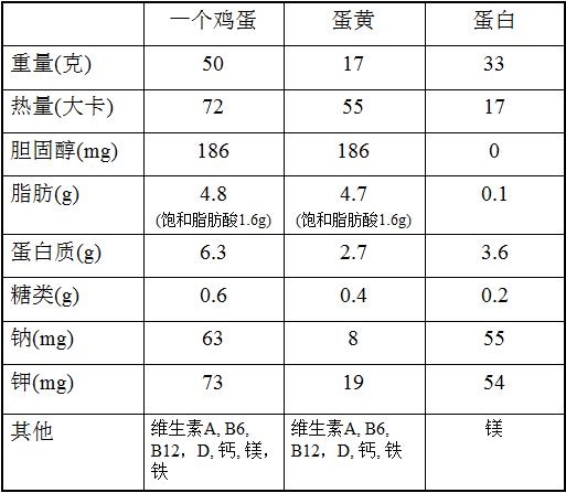我们先来看看一个生鸡蛋里(包括蛋白和蛋黄)到底都含有哪些营养成分: