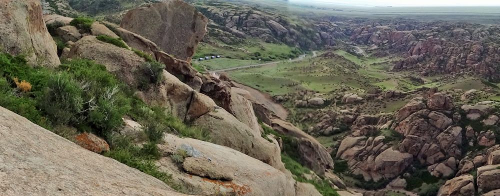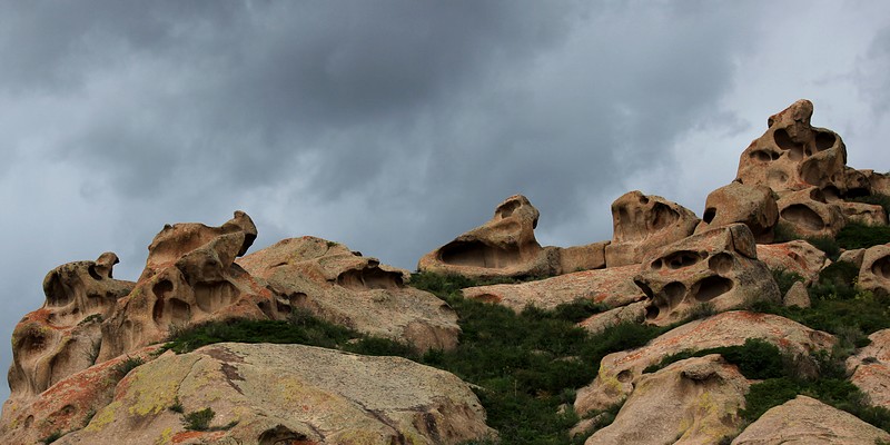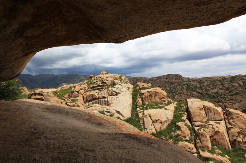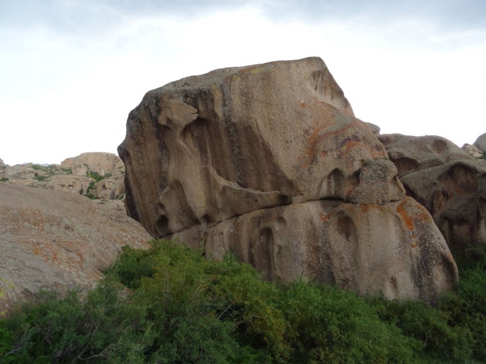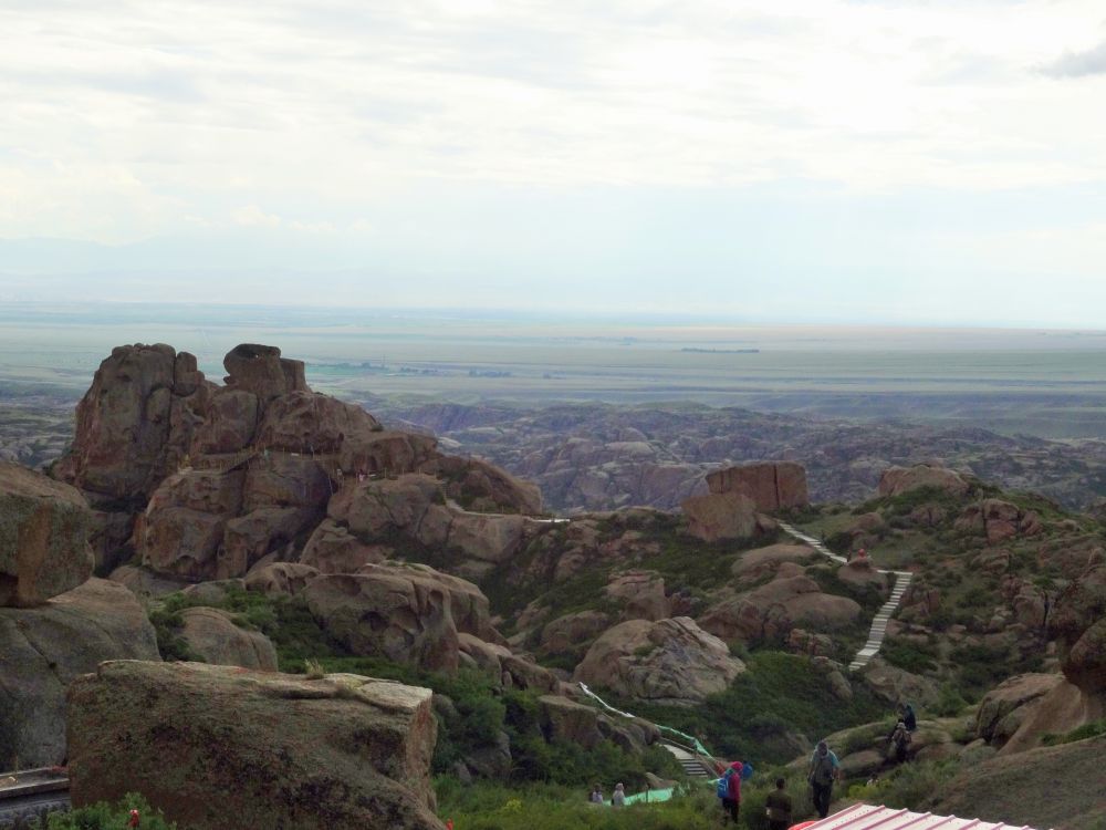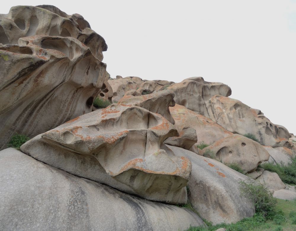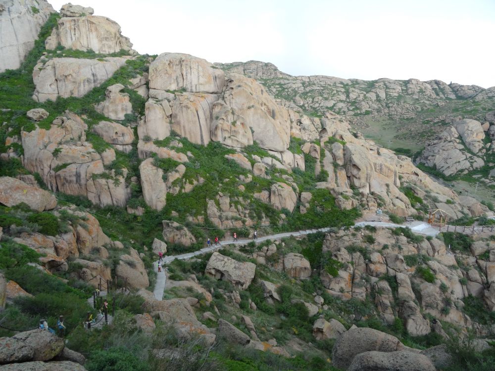 怪石峪方圆多少里都是这样奇特的景致,但远望这个区域之外的风景却完全不同。说这里怪石上大大小小的凹凸圆窝是数亿年前深海海底的石头经海浪的不断冲击而形成,但为什么只是这200多公里的区域有这样的风景呢?
