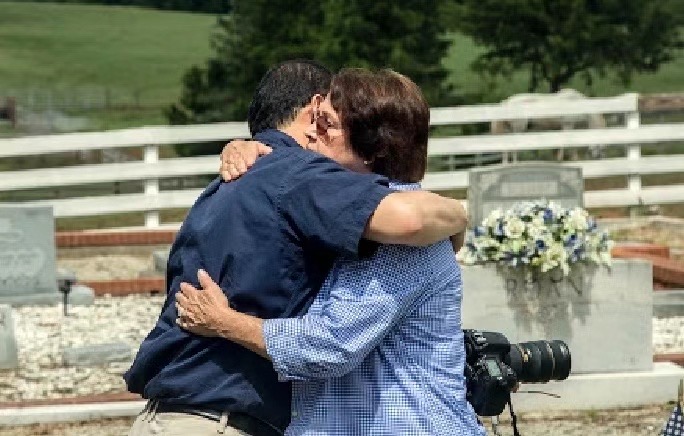 他们触摸墓碑的那一刻,时间又一次被定格,思绪又一次被震撼。那一刻,中国人对历史的尊重,二战情缘在这里凝聚升华。那一刻,亚城华人的善意,谱写着中美这一代人血溶于水的悲喜情长。