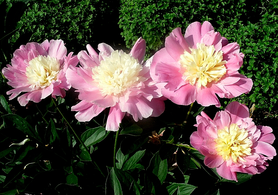 家里院子里的芍药开花时,一支枝干多是一朵花,